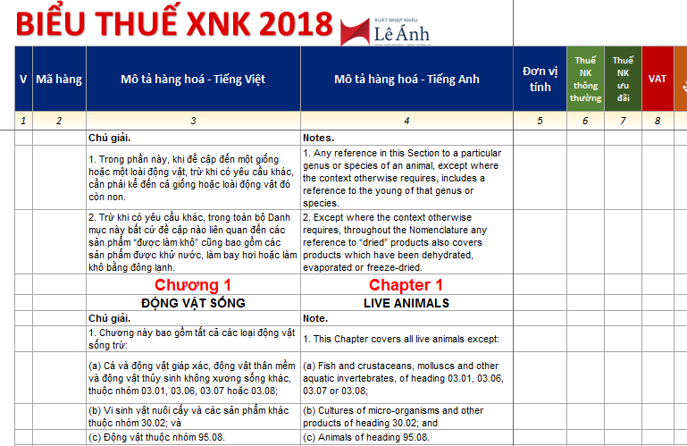 Biểu thuế Xuất nhập khẩu
